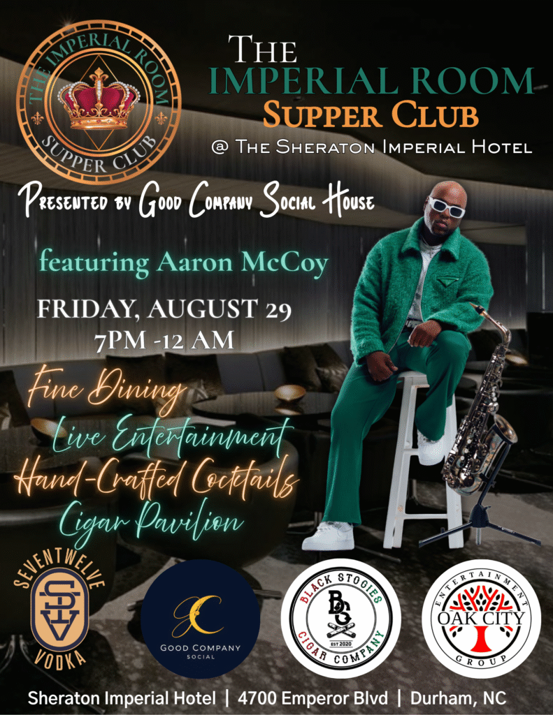 Friday, August 29 – 7PM to 12AM, Sheraton Imperial Hotel, 4700 Emperor BLVD, Durham, NC